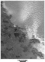 The margin of the lava flow field associated with the Prometheus volcanic plume on Jupiter's moon Io is seen in this image, acquired by NASA's Galileo spacecraft on February 22, 2000. The image has a resolution of 12 meters (39 feet) per picture element. The dark lava has margins similar to those formed by fluid lava flows on Earth. This entire area is under the active plume of Prometheus, which is constantly raining bright material. Hence, Galileo scientists interpret the darkest flows as being the most recent. They are not yet covered by bright plume fallout and perhaps too warm for bright gas rich in sulphur dioxide to condense.