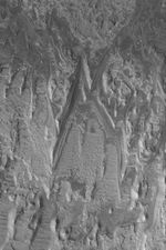 Exposures of layered, sedimentary rock are common on Mars. From the rock outcrops examined by the Mars Exploration Rover, Opportunity, in Meridiani Planum to the sequence in Gale Crater's central mound that is twice the thickness of of the sedimentary rocks exposed by Arizona's Grand Canyon, Mars presents a world of sediment to study. This unusual example, imaged by the Mars Global Surveyor (MGS) Mars Orbiter Camera (MOC), shows eroded layer outcrops in a crater in Terra Tyrrhena near 15.4°S, 270.5°W. Sedimentary rocks provide a record of past climates and events. Perhaps someday the story told by the rocks in this image will be known via careful field work. The image covers an area about 3 km (1.9 mi) wide and is illuminated by sunlight from the left.