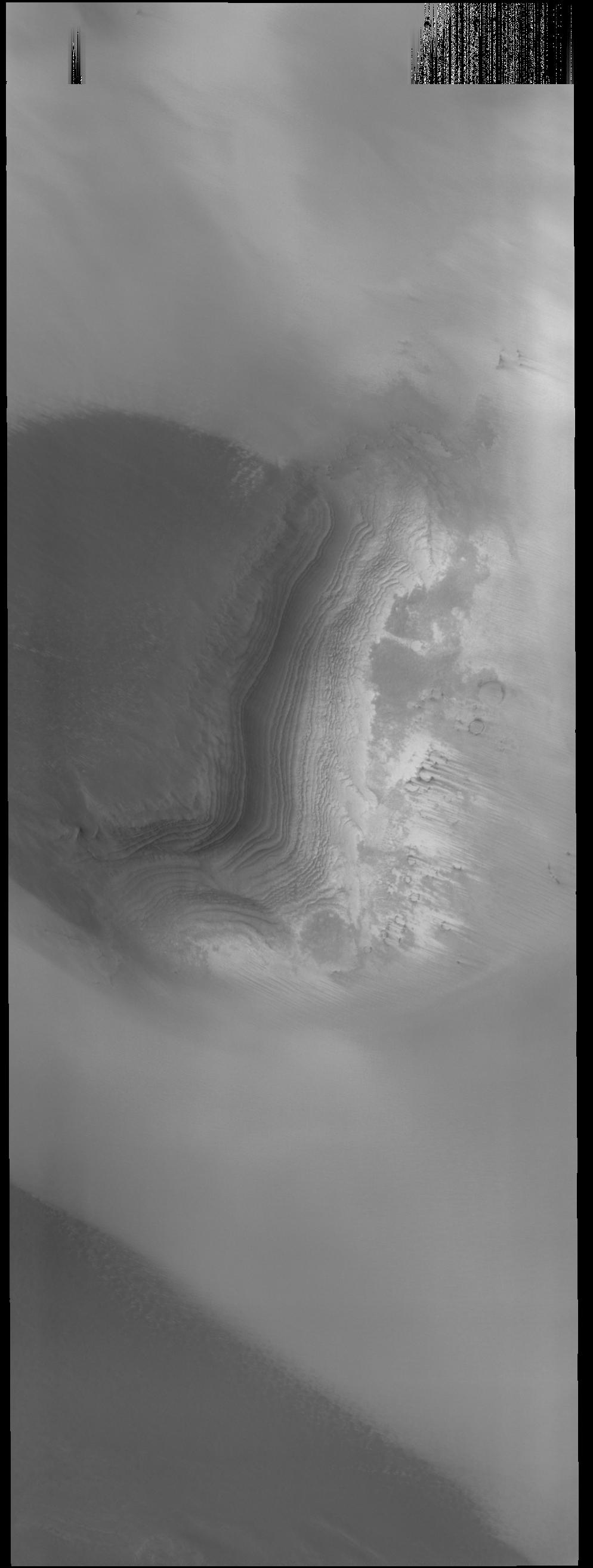 This image captured by NASA's 2001 Mars Odyssey spacecraft shows layered material near the south polar cap.