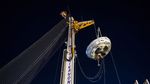 NASA's Low-Density Supersonic Decelerator (LDSD) hangs from a launch tower at U.S. Navy's Pacific Missile Range Facility in Kauai, Hawaii.