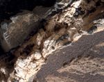 This view from the Mars Hand Lens Imager (MAHLI) on the arm of NASA's Curiosity Mars rover shows a combination of dark and light material within a mineral vein at a site called "Garden City" on lower Mount Sharp.