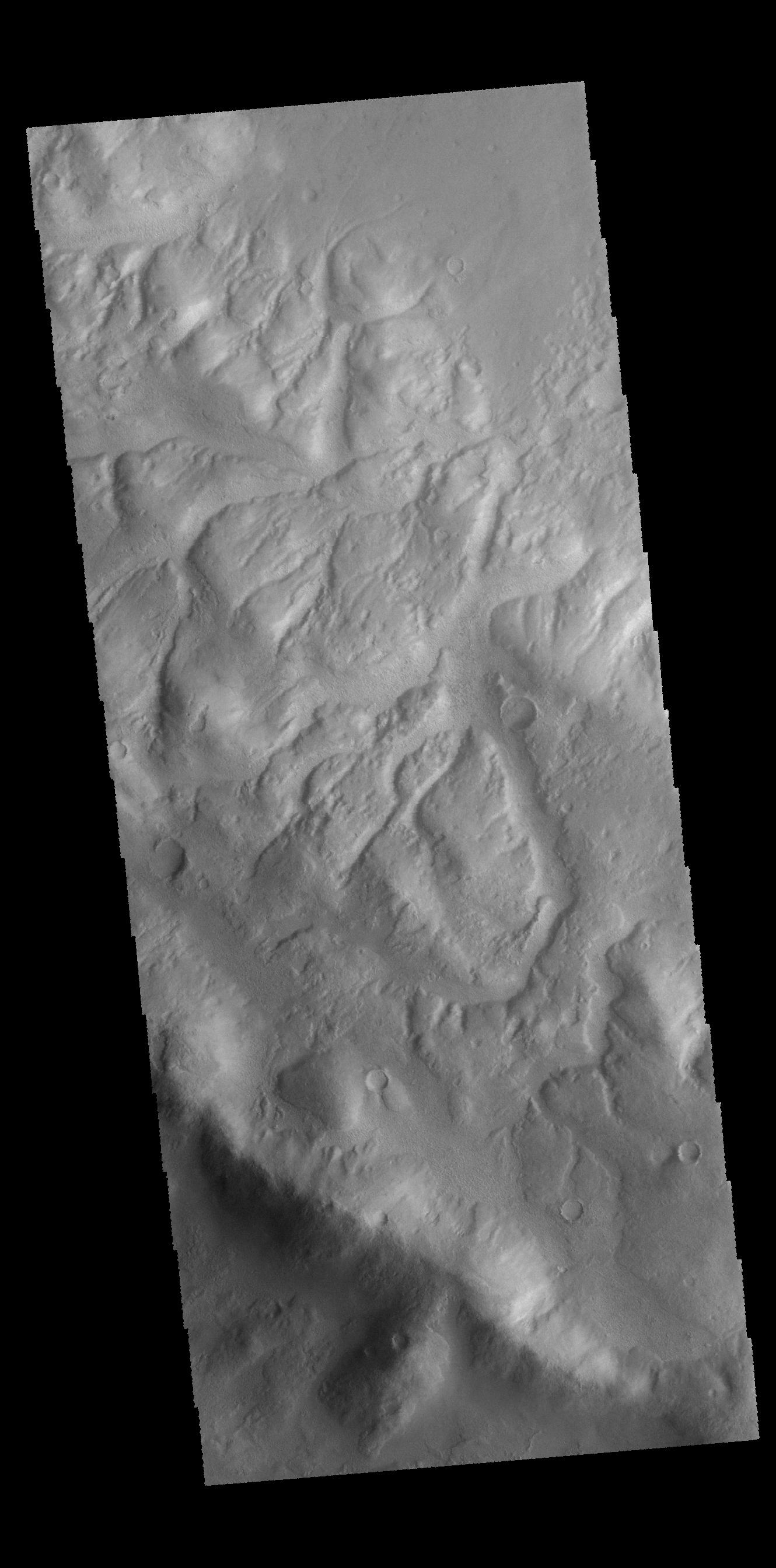 Numerous channels dissect the rim of Lohse Crater.