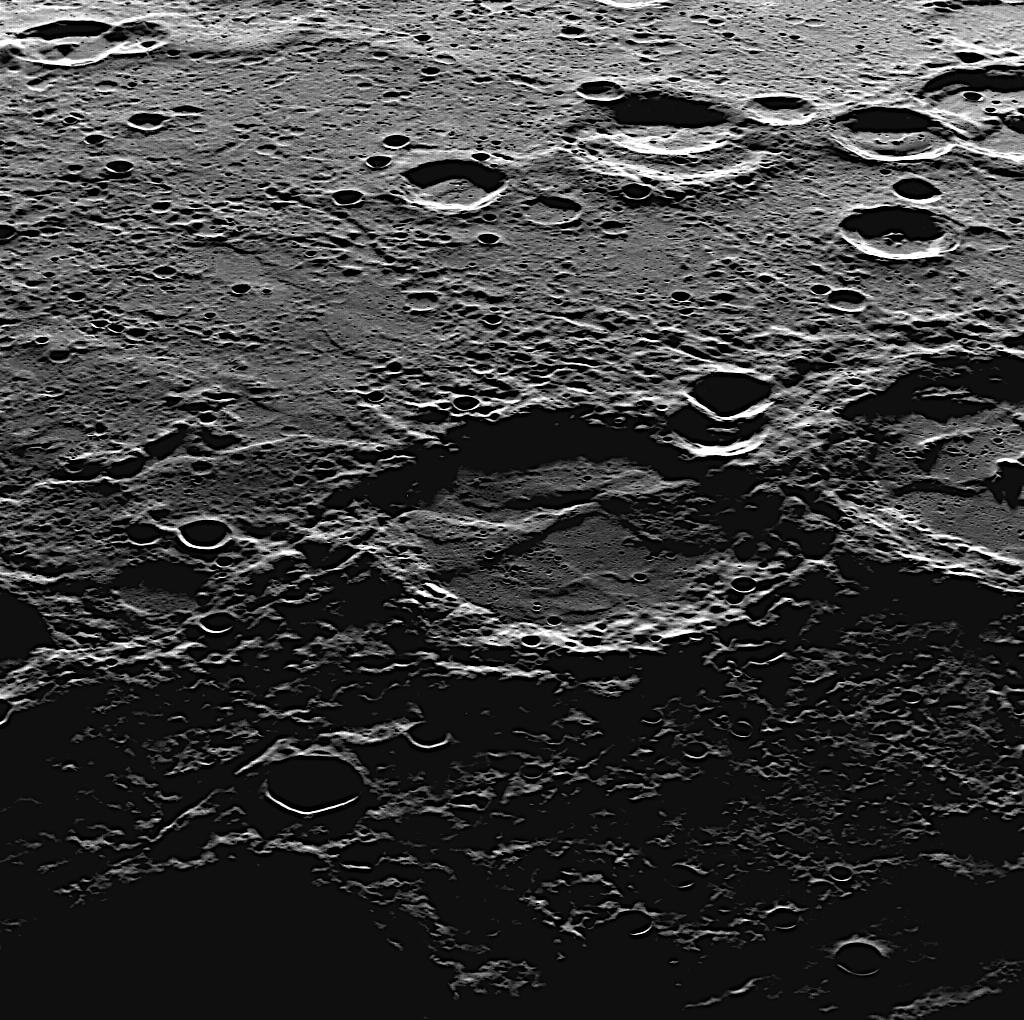 Scale: The large crater near the center of the image is approximately 110 kilometers (68 miles) in diameter
