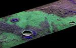 CRISM collects spectral data that can be used as a chemical fingerprint for the upper most surface. This information suggests that this small patch of surface is covered with salts (chlorides) represented in green and water-rich clays that appear in blue.