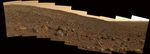 This mosaic of images is an approximate true-color rendering of snapshots taken by the rover's panoramic camera using 750-, 530-, and 430-nanometer filters. Spirit took these images at approximately 3 p.m. local true solar time in Gusev Crater on Mars. The rover then continued to climb throughout July, making numerous scientific investigations of martian rocks along the way.