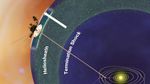 This artist's concept shows NASA's Voyager 1 spacecraft in a new region at the edge of our solar system where there are fewer low energy particles that originate from inside our solar system. Voyager 1 is in an area scientists are calling the stagnation region, at the outer layer of the heliosphere, or magnetic bubble that the sun blows around itself. Voyager 1 passed the termination shock in 2004 into the heliosheath, where the solar wind dramatically slows down and becomes turbulent. That area has the highest bombardment of higher energy particles from inside our solar system and their intensity held steady until mid-2010, when they sharply diminished to half the amount. The reduction indicates that these particles may be leaking to interstellar space and the spacecraft is nearing the space between stars.