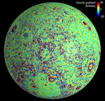 This moon map shows the gravity gradients calculated by NASA's GRAIL mission. Red and blue correspond to stronger gravity gradients.