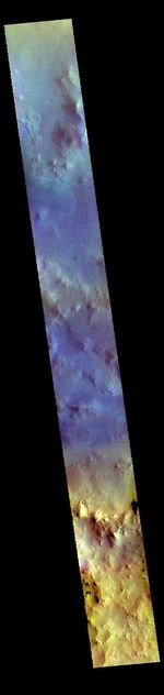 The THEMIS VIS camera contains 5 filters. The data from different filters can be combined in multiple ways to create a false color image. These false color images may reveal subtle variations of the surface not easily identified in a single band image.