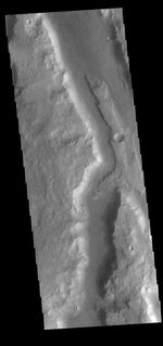 This VIS image shows a small section of Ma'adim Valles. Ma'adim Valles is an outflow channel that arises in the southern lowlands and flows northward into Gusev Crater, the home of the MER Spirit rover. Located in Terra Cimmeria, the channel is 700km (435 miles) long, with widths up to 20 km (12 miles) and depths to 2 km (1.2 miles) in places.