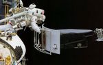 Astronaut Jeffrey Hoffman removes the Wide Field and Planetary Camera 1 (WFPC 1) during the first Hubble servicing mission (SM1), which took place in December, 1993.