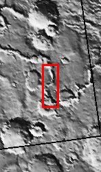 This sinuous channel begins at the edge of Cerulli Crater in northern Arabia and snakes its way across 1000 km of cratered highlands before reaching Deuteronilus Mensae at the boundary of the northern lowlands. The fluid that carved the channel, either lava or water, flowed from the bottom of this scene to the top. The quasi-streamlined features on the channel floor may have nothing to do with flow and instead may be due to a permafrost creep process.