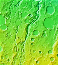 Today's VIS image shows a small section of Mangala Valles. Mangala Valles is a complex channel more than 900km long (560 miles). The channel system starts near Mangala Fossae, a large tectonic feature that intersects the volcanic plains of Daedalia Planum. Like other channels in the region, Mangala Valles flows northward, eventually emptying into southern Amazonis Planitia.