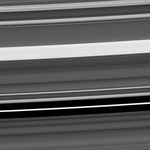 Near the bottom of the frame is a narrow eccentric ringlet lying in a gap that researchers suspect may contain one or more very small moons. Farther up, the bright feature is one of the C ring's "plateaus." These bright features in the C ring are much denser than the surrounding material, and their origin is also being studied.