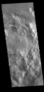 Today's VIS image shows a small section on Margaritifer Chaos. The term chaos is applied to regions where the surface is being eroded to form mesas. As the surface processes continue individual mesas become more isolated and take on the appearance of regions of hills. At the top of the image is Margaritifer Terra, which is being dissected into large mesas. Towards the bottom of the image the mesas have been eroded into smaller hills.