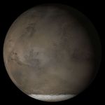 This picture is a composite of Mars Global Surveyor (MGS) Mars Orbiter Camera (MOC) daily global images acquired at Ls 193° during a previous Mars year. This month, Mars looks similar, as Ls 193° occurs in mid-April 2005. The picture shows the Acidalia/Mare Erythraeum face of Mars. Over the course of the month, additional faces of Mars as it appears at this time of year are being posted for MOC Picture of the Day. Ls, solar longitude, is a measure of the time of year on Mars. Mars travels 360° around the Sun in 1 Mars year. The year begins at Ls 0°, the start of northern spring and southern autumn.