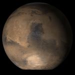 This picture is a composite of Mars Global Surveyor (MGS) Mars Orbiter Camera (MOC) daily global images acquired at Ls 53° during a previous Mars year. This month, Mars looks similar, as Ls 53° occurs in mid-May 2006. The picture shows the Syrtis Major face of Mars. Over the course of the month, additional faces of Mars as it appears at this time of year are being posted for MOC Picture of the Day. Ls, solar longitude, is a measure of the time of year on Mars. Mars travels 360° around the Sun in 1 Mars year. The year begins at Ls 0°, the start of northern spring and southern autumn.