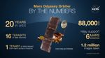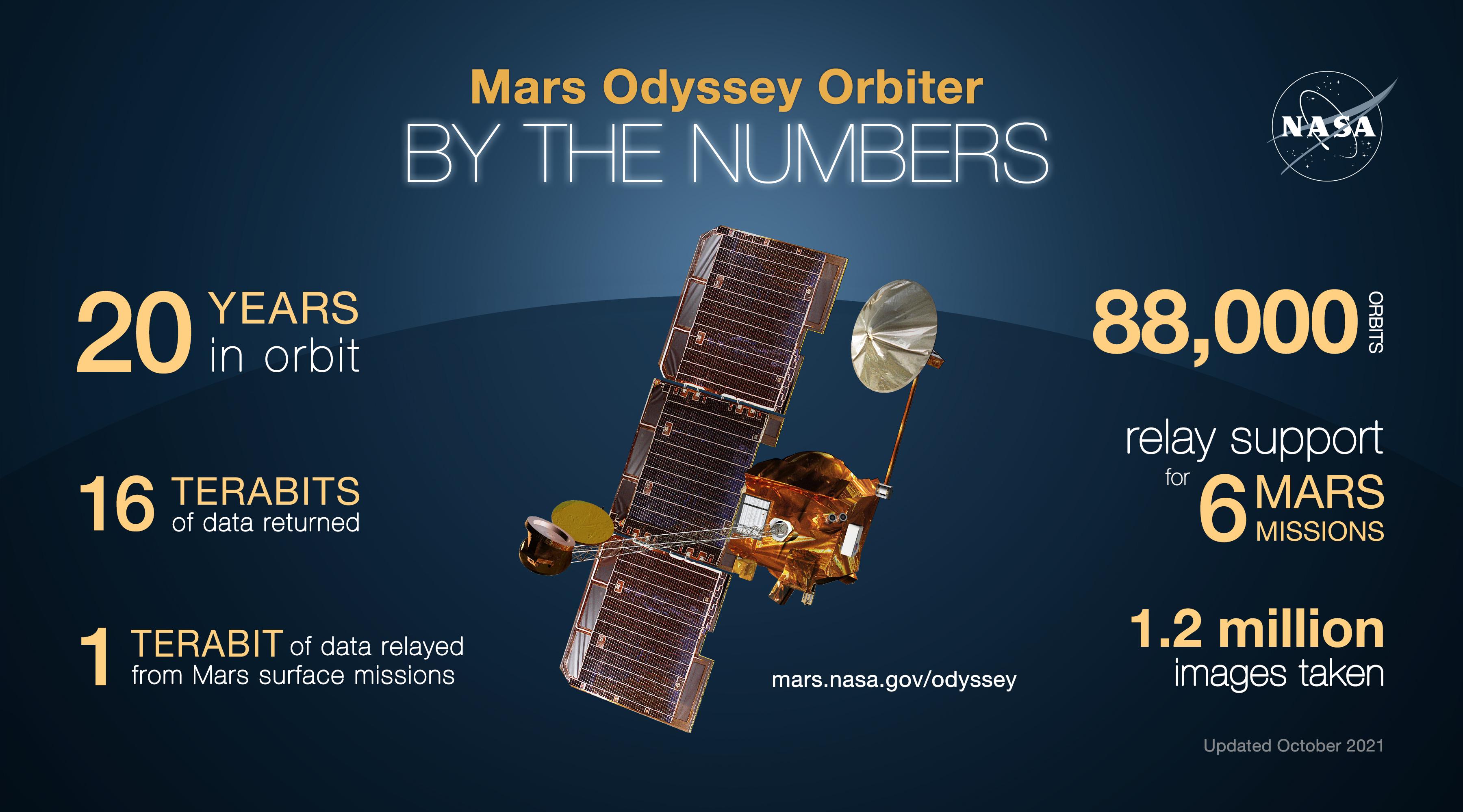 - Mars Odyssey has returned 16 terabits of total science data to Earth, including 1 terabit of data relayed from Mars surface missions.