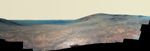 The high point in the right half of the scene is "Knudsen Ridge," which forms part of the southern edge of Marathon Valley. Portions of the northeastern and eastern rim of Endeavour crater appear on the distant horizon. Endeavour Crater is 14 miles (22 kilometers) in diameter. The fractured texture of Marathon Valley's floor is visible in the foreground.