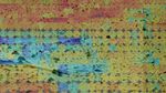 This image shows the martian terrain through the eyes of the Mars Exploration Rover Spirit's mini-thermal emission spectrometer, an instrument that detects the infrared light, or heat, emitted by objects. The different colored circles show a spectrum of soil and rock temperatures, with red representing warmer regions and blue, cooler. Clusters of cool rocks can be seen to the left and center. Scientists and engineers will use this data to pinpoint features of interest, and to plot a safe course for the rover free of loose dust. The mini-thermal emission spectrometer data are superimposed on an image taken by the rover's panoramic camera.