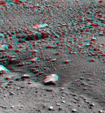 This anaglyph, acquired by NASA's Phoenix Lander's Surface Stereo Imager on Sol 31, the 31st Martian day of the mission (June 26, 2008), shows a stereoscopic 3D view of the Martian surface near the lander.