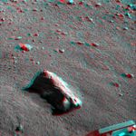 This anaglyph, acquired by NASA's Phoenix Lander's Surface Stereo Imager on Sol 21, the 21st Martian day of the mission (June 15, 2008), shows a stereoscopic 3D view of the Martian surface near the lander. The largest rock seen in this image is informally called "Midgard." The edge of Phoenix's deck is seen in the bottom right corner of the image.