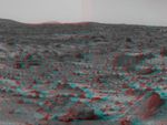 An area of rough Martian terrain is prominent in this stereo image, taken by the Imager for Mars Pathfinder (IMP) on Sol 3. 3D glasses are necessary to identify surface detail. The large rock dubbed "Wedge" is at lower right. The IMP is a stereo imaging system with color capability provided by 24 selectable filters -- twelve filters per "eye."