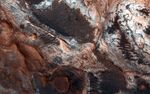 This image shows a small portion of Mawrth Vallis, one of the many outflow channels feeding north into the Chryse Basin. This ancient valley once hosted flowing water. The erosive power of the flowing water rapidly cut down into the underlying layers of rock to expose a host of diverse geologic landforms visible today.
