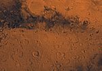 Mars digital-image mosaic merged with color of the MC-20 quadrangle, Sinus Sabeus region of Mars. Heavily cratered highlands dominate the Sinus Sabeus quadrangle. The northern part is marked by a large impact crater, Schiaparelli. Schiaparelli is an ancient remnant of the many large impact events that occurred during the period of heavy bombardment. Latitude range -30 to 0 degrees, longitude range -45 to 0.