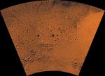 Mars digital-image mosaic merged with color of the MC-27 quadrangle, Noachis region of Mars. Heavily cratered highlands dominate the Noachis quadrangle. The northeastern part is marked by the western half of the ancient large Hellas basin, defined by a rim of rugged mountain blocks that surrounds a nearly circular expanse of light-colored plains. The southeastern part is marked by the Peneus caldera and part of the Amphitrites shield volcano and associated ridged plains that may be basaltic flows. Latitude range -65 to -30 degrees, longitude range -60 to 0 degrees.