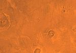 Mars digital-image mosaic merged with color of the MC-9 quadrangle, Tharsis region of Mars. This image is from NASA's Viking Orbiter 1.