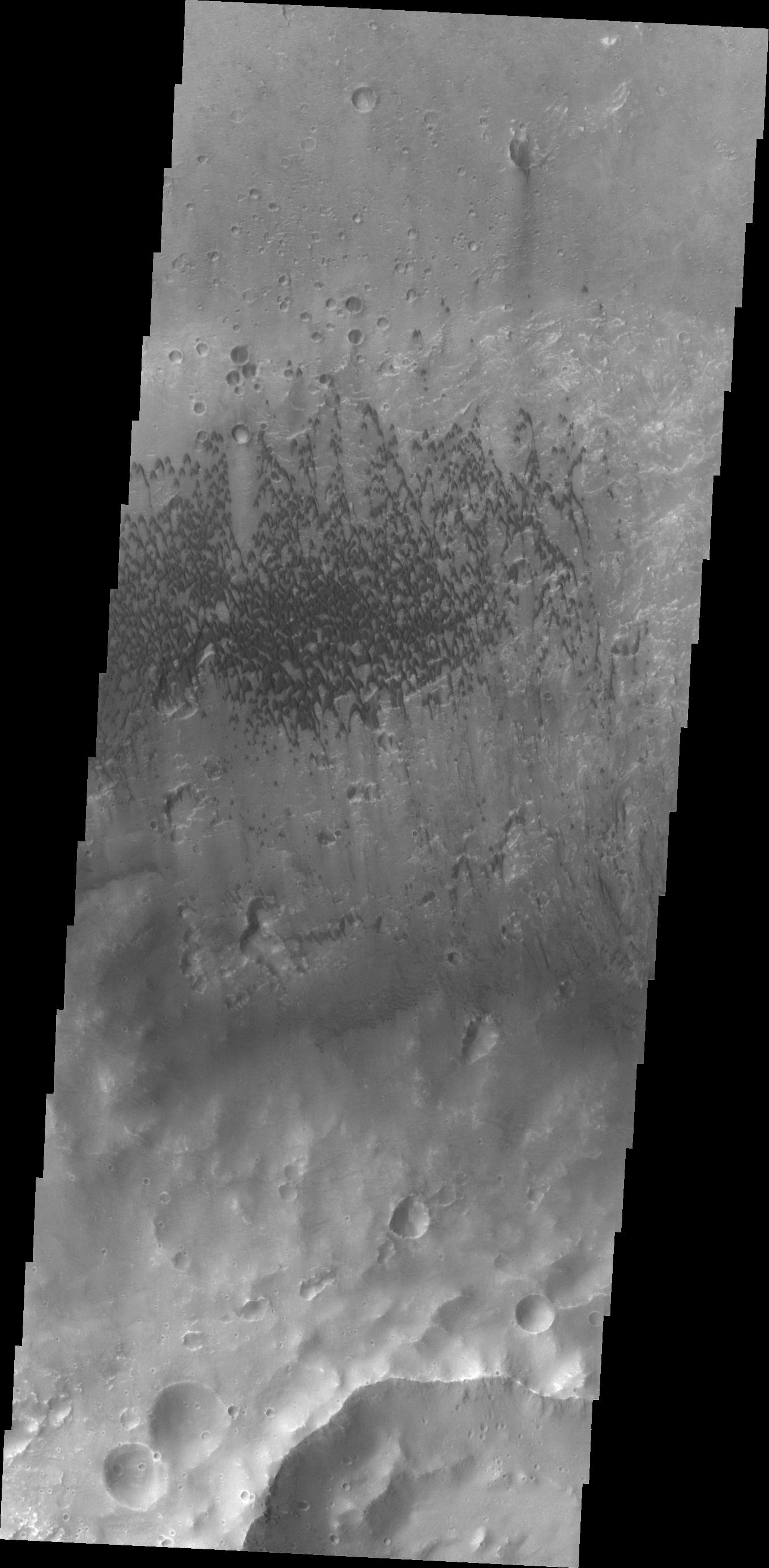 These sand dunes are located on the floor of McLaughlin Crater.