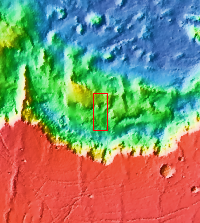 The THEMIS VIS camera contains 5 filters. The data from different filters can be combined in multiple ways to create a false color image. These false color images may reveal subtle variations of the surface not easily identified in a single band image. Today's false color image shows part of Melas Chasma.