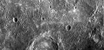 The image shows part of a large, fresh crater with secondary crater chains located near Mercury's equator on the side of the planet newly imaged by MESSENGER. Large, flat-floored craters often have terraced rims from post-impact collapse of their newly formed walls. The hundreds of secondary impactors that are excavated from the planet's surface by the incoming object create long, linear crater chains radial to the main crater. These chains, in addition to the rest of the ejecta blanket, create the complicated, hilly terrain surrounding the primary crater. By counting craters on the ejecta blanket that have formed since the impact event, the age of the crater can be estimated. This count can then be compared with a similar count for the crater floor to determine whether any material has partially filled the crater since its formation. With their large size and production of abundant secondary craters, these flat-floored craters both illuminate and confound the study of the geological history of Mercury.