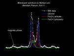 This spectrum of the soil at the Mars Exploration Rover Opportunity's landing site, Meridiani Planum, shows the presence of the shiny green mineral called olivine also seen at the Mars Exploration Rover Spirit's landing site, Gusev Crater. Based on this data, scientists believe the soil at Meridiani is made-up of in part of finely grained basalt, a type of volcanic rock. The spectrum was captured by Opportunity's Moessbauer spectrometer.