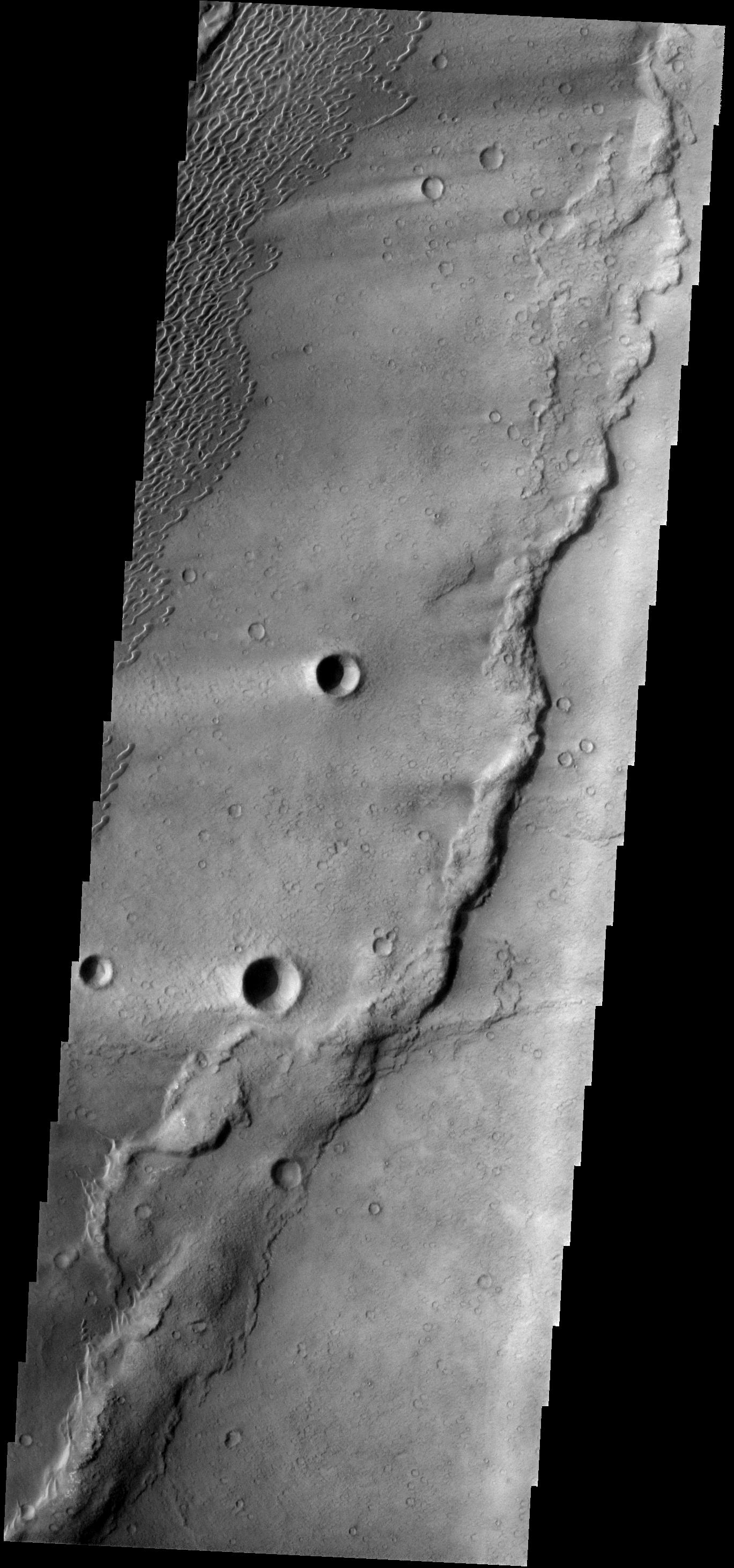 These dunes occur in the Syrtis Major volcanic complex, near Meroe Patera.