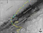 This map shows the route driven by NASA's Curiosity Mars rover, from the location where it landed in August 2012 to its location in July 2017, and its planned path to additional geological layers of lower Mount Sharp.