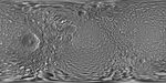 This global map of Saturn's moon Mimas was created using images taken during Cassini spacecraft flybys. The moon's large, distinguishing crater, Herschel, is seen on the map at left.