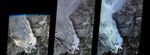 The first images taken by NASA's Multi-angle Imaging SpectroRadiometer (MISR) on February 24, 2000, show the winter landscape of James Bay, Ontario, Canada from three of the instrument's nine cameras. The image at left captures the opening of MISR's cover and was recorded by the most oblique forward-viewing camera, which images the Earth at 70 degrees relative to a vertical plane. Several islands, including the crescent-shaped Akimiski Island, are visible in the frozen bay. The center image was acquired a few minutes later by the "nadir" camera, which looks straight down. The image on the right was taken seven minutes after the first image from the most oblique, aftward-viewing camera.