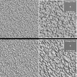 Two representative focus conditions are shown here. In each frame, the upper left corner of the left-hand image is shown enlarged 2-fold on the right. The star Omega 2 Scorpius is shown for comparison; its oblong shape is an indication of how far and in what direction focus lies. The closer to a symmetric "circle," the closer to focus. A comparison of the enlargements shows that subtle features are better discriminated in the image at 0.35 W hub (lower picture) than at 0.66 W rim (upper picture), indicating that heating of the inner portion of the mirror moves the camera closer to focus. The two MOC images show similar surfaces on the permanent north polar ice cap at nearly 1.5 meters (5 feet) per pixel. Each image (left side) shows an area about 578 meters (631 yards) wide; illumination is from the upper right.