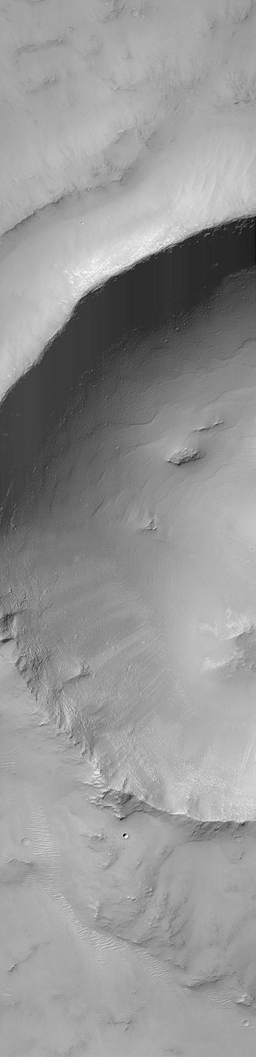 This crater is located in south-central Syria Planum and is about 7.0 kilometers (4.4 miles) across. Illumination is from the upper left.