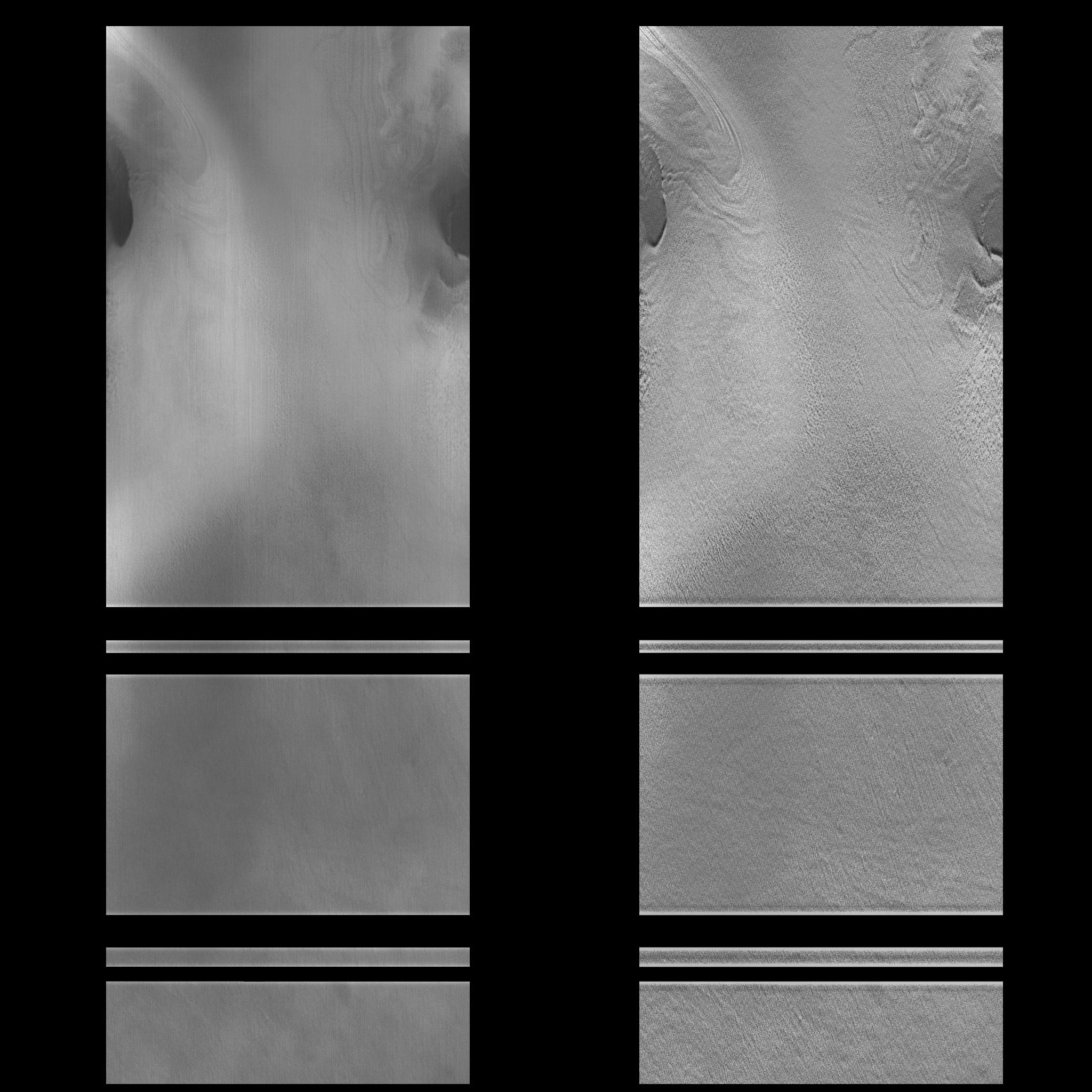 The effects of ground fog, which obscures the surface features(left), has been minimize by filtering (right).