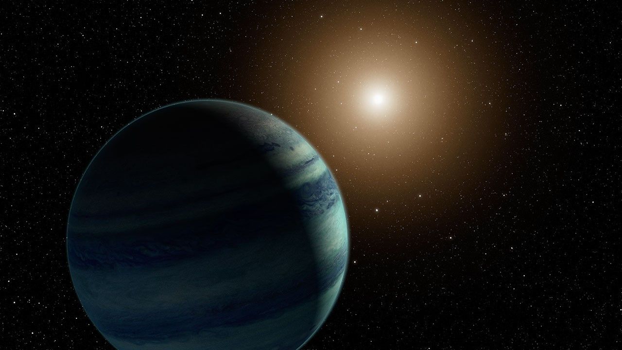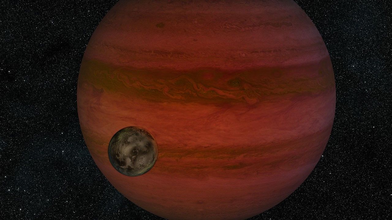 Researchers have detected the first "exomoon" candidate -- a moon orbiting a planet that lies outside our solar system. Using a technique called "microlensing," they observed what could be either a moon and a planet -- or a planet and a star. This artist's conception depicts the two possibilities, with the planet/moon pairing on the left, and star/planet on the right. If the moon scenario is true, the moon would weigh less than Earth, and the planet would be more massive than Jupiter.