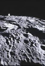 This image of the far side of the lunar surface, with Earth in the background, was taken by NASA's MoonKAM system onboard the Ebb spacecraft as part of the first image set taken from lunar orbit from March 15-18, 2012. A little more than half-way up and on the left side of the image is the crater De Forest. Due to its proximity to the southern pole, DeForest receives sunlight at an oblique angle when it is on the illuminated half of the Moon.