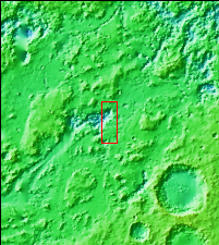 This VIS image shows a region of chaos near the terminal end of Morava Valles. Located in Margaritifer Terra, Morava Valles is one of several channels that empty northward towards Chryse Planitia. Morava Valles arises from a region of chaos. Chaos terrain is also found along the course of the channel and may occur where the channel flow fluid warmed the subsurface ice creating additional release points for melted subsurface ice. Chaos terrain is typified by regions of blocky, often steep sided, mesas interspersed with deep valleys. With time and erosion the valleys widen and the mesas become smaller. It has been proposed that a catastrophic outflow of subsurface water creates the chaos and provides the surface flow creating the channel.