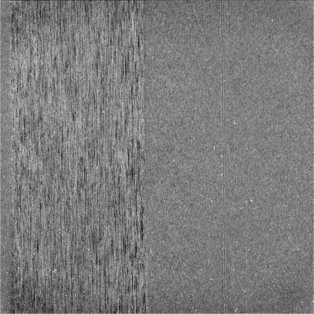 In order to create the enhanced image (Figure 1), the large-scale brightness structure of the first image was averaged and then subtracted. What remains are any compact or local structures, including the textures discussed above. Also more visible in the enhanced image are small blemishes, including long, thin vertical lines that come from defects in the camera and short slanted lines that are smeared stars.