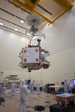 This image was taken on Sept. 27, 2010, in the high-bay cleanroom at Lockheed Martin Space Systems in Denver, during Juno's assembly process.