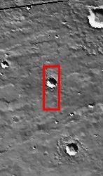 The image of a crater near Elysium Mons was captured from the 2001 Mars Odyssey Spacecraft, at 16:47 Mars Local Time, on November 23, 2002. The image is 18km x 54km, Lat. 21.6N, Long. 137.21E, Sun Angle of 64.13 degrees, 6,746.4 seconds into orbit, and with a camera filter centered at about 650nm.
