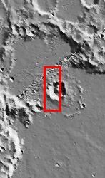 The major feature of our image is a large crater that contains lobates situated on the mid-left hand side of the image. Other features present in the image include a graben running along the top section and a channel that runs parallel to it. We are still looking into the possibilities behind the structure of the crater and if it could have had something to do with the presence of water on the surface. This area is somewhat unique due to its relative closeness to a region containing three of the largest volcanoes in the solar system. We believe that the graben could be due to volcanic activity in the past that affected our area.