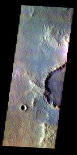 The THEMIS VIS camera contains 5 filters. The data from different filters can be combined in multiple ways to create a false color image. These false color images may reveal subtle variations of the surface not easily identified in a single band image. Today's false color image shows part of the floor of Muller Crater located in terra Cimmeria.