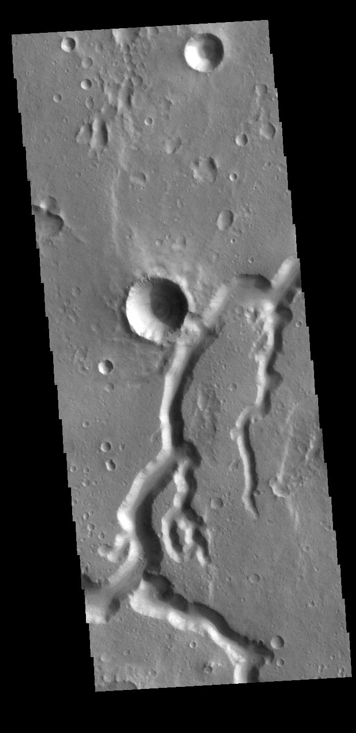 This VIS image shows a section of Nanedi Valles. Located In Xanthe Terra, the channel system is more than 500 km (310 miles) long.